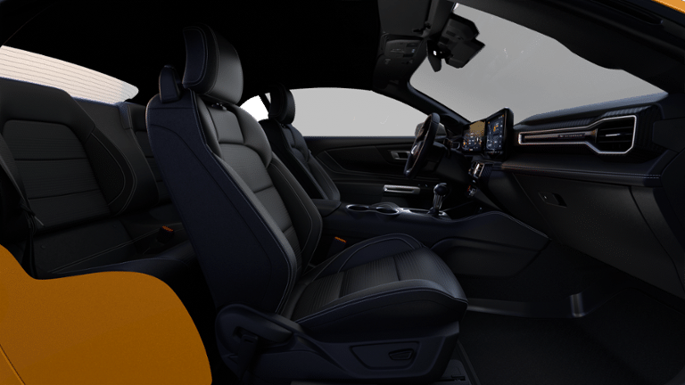 This NEW 2026 Orange Fury Metallic Tri-Coat Ford Mustang EcoBoost Premium RWD is well equipped and includes these features and benefits:Ford Connectivity Package (one-Time Purchase - 7 Years), Mustang Nite Pony Package (Black Front and Rear Pony Badges, Black Mirror Caps, and Wheels: 19 x 8.5 Ebony Black-Painted Aluminum), 1st Row Carpeted Black Floor Mats, 4-Wheel Disc Brakes, 9 Speakers, ABS brakes, Active Anti-Theft System, Active Valve Performance Exhaust, Air Conditioning, Alloy wheels, AM/FM radio: SiriusXM with 360L, AM/FM Stereo, Auto High-beam Headlights, Automatic temperature control, Brake assist, Bumpers: body-color, Compass, Convertible roof lining, Delay-off headlights, Driver door bin, Driver vanity mirror, Dual front impact airbags, Dual front side impact airbags, Electronic Stability Control, Emergency communication system: 911 Assist, Exterior Parking Camera Rear, Four wheel independent suspension, Front anti-roll bar, Front Bucket Seats, Front Center Armrest, Front dual zone A/C, Front reading lights, Fully automatic headlights, Glass rear window, Heated front seats, Illuminated entry, Knee airbag, Leather Shift Knob, Low tire pressure warning, Occupant sensing airbag, Outside temperature display, Overhead console, Panic alarm, Passenger door bin, Passenger vanity mirror, Perimeter Alarm, Power convertible roof, Power door mirrors, Power driver seat, Power steering, Power windows, Premium Floor Liners Front and Rear (with Carpet Mats), Radio data system, Rain sensing wipers, Rear anti-roll bar, Rear Parking Sensors, Rear window defroster, Remote keyless entry, Security system, Speed control, Speed-sensing steering, Speed-Sensitive Wipers, Sport steering wheel, Steering wheel mounted audio controls, SYNC 4, Tachometer, Telescoping steering wheel, Tilt steering wheel, Traction control, Trip computer, Variably intermittent wipers, Voltmeter, and Wheels: 18 x 8 Painted Shadow Silver Cast Aluminum.